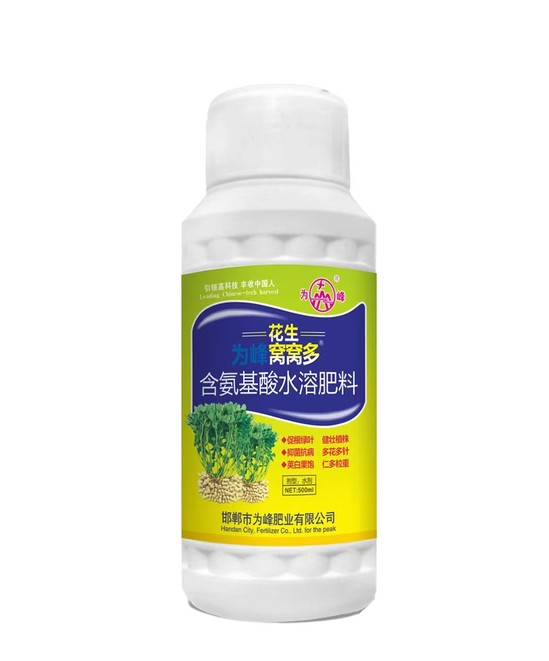 花生葉面肥采用國(guó)際先進(jìn)的技術(shù)及進(jìn)口原料加工螯合而成,內(nèi)含硼、鉬及氨基酸、稀土等多種營(yíng)養(yǎng)成分,并添加植物細(xì)胞賦活素、免疫因子、甲殼蛋白,核苷酸等多種成分,為峰肥業(yè)